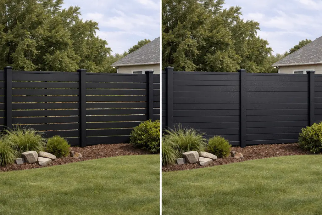 A full privacy fence has no gaps. The surface is solid. This gives you maximum visual screening and a stronger sense of enclosure.